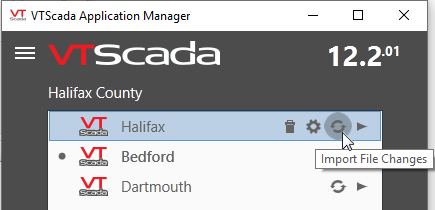 The Import File Changes tool provides a convenient method for developers who are working directly with source code files to import their changes. (Changes and additions to source code files are ignored by VTScada until imported). Note however that the lack of an opportunity to review changes carries a certain degree of risk. If there is any chance that someone else may have edited the user files, then you are advised to use the Import/Export Files dialog, where you can review changes before importing them.