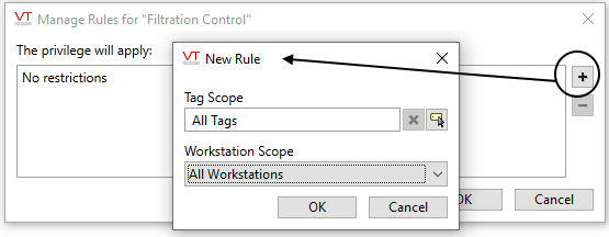 A "rule" is defined as a limit placed on a privilege. The operator may have the privilege of acknowledging an alarm for a pump, but only pumps under one context (station or site) within the Tag Browser. Or, only when signed-in at a certain workstation.