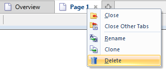 You cannot delete System pages such as the Alarm page and the Reports page. You can remove OEM layer pages from your menu, but cannot fully delete them because they will continue to exist in the OEM layer. This includes the VTScada Overview page and sample pages.