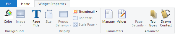 Used when editing a widget instance, drawn on a page. If the widget contains images the Image Tools ribbon will also be available.