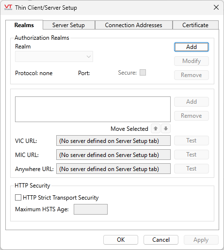 - Open the VTScada Thin Client / Setup dialog, from the VAM
