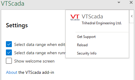 When each tool of the VTScada Add-in is opened, there will be a fly-out menu at the upper right. Use this to learn more about the tool.