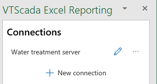 - Open the VTScada toolbar in Excel and select either the Manage Connections tool or the History tool.