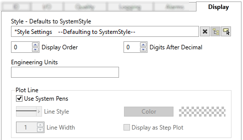 The default configuration will search for the first ancestor or then sibling tag of the Style Settings type. If there is none, it will use System Style, which is the default style tag that is automatically part of every new VTScada application.