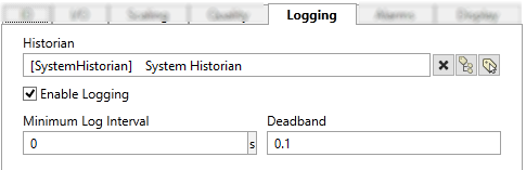 If a deadband is not applied on the logging tab, a default deadband of 0.25% of the scaled range is applied. This value is stored in the application property DefaultAnalogDeadbandFractionOfFullScale