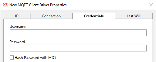 Use this tab to provide the user name and password if those are required to sign into the MQTT broker. (Not all brokers will require these.)