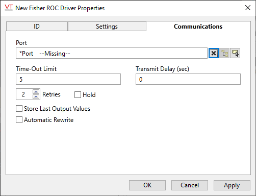 ROC Driver properties Communications tab