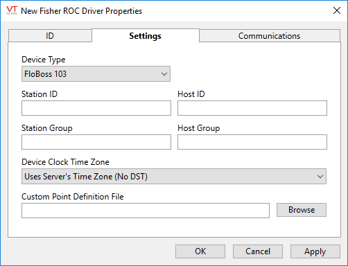 If configuring for custom point types, select the .CSV file holding the definition for those types. This file must have the same format as the file C:\VTScada\VTS\ROCPointDefinitions.CSV, which is found in every installation of VTScada. Refer to: ROC Address Storage.