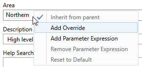 Having made use of an expression to control a tag's configuration, you can choose to override that value in a given child tag. For example, a child tag which would otherwise inherit the area value "North County" might be assigned the area "South Street". When a value that would otherwise be based on a calculation is changed, this is called an "override". Assigning a value to a field that has no expression does not override anything and is simply called "assigning a value". The difference can be seen in the color that the field will turn: orange for overrides, and green for simple assignments.