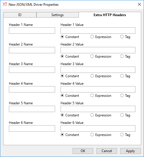 Some APIs may require extra information such as tokens, form data, etc. Use this tab to specify name=value pairs to be added to the header. Values may be specified here, or supplied from expressions or tags.