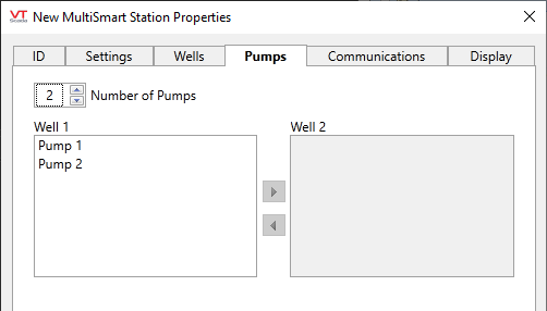 MultiSmart Station properties Pumps tab