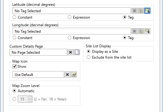 In most cases, it is easier to set the location using the map interface of the Site Details page than to enter the latitude and longitude values here.