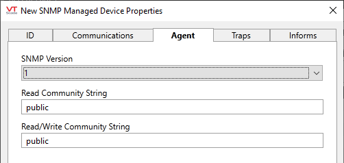 - INFORMs credentials set in any driver might conflict with VTScada’s SNMPAgent GET and SET credentials and lead to unpredictable behavior.