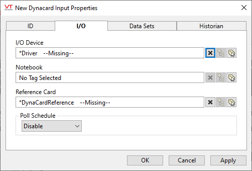 Dynacard Input properties I/O tab
