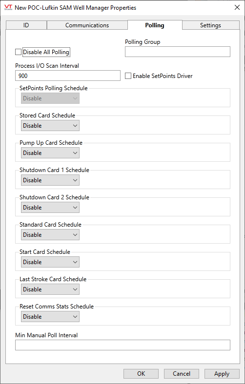 POC-Lufkin SAM Well Manager properties Polling tab