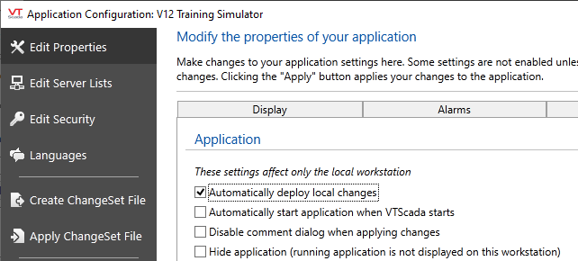 If you switch off the Automatically Deploy option, then you must choose when to deploy your changes, using the Deploy menu item in the Application Configuration dialog. All local changes will be included when deploying.