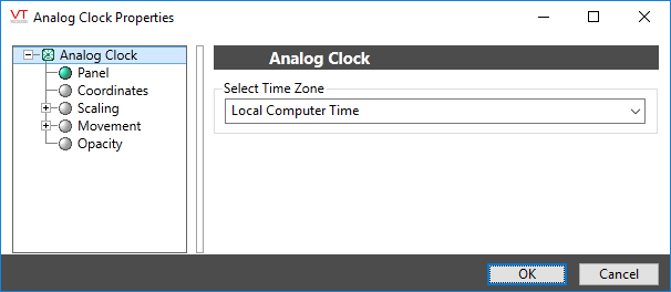 The properties dialog for an Analog Clock: