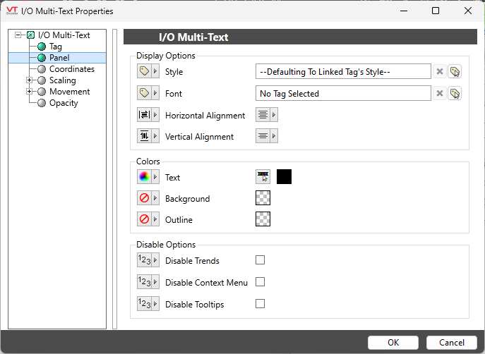 If no values are defined, in the Style Settings tag, this will display the default labels and colors shown in the Digitals tab of the SystemStyle tag ("Off", "On", "2", "3") if current value falls in that range. If the tag has a value that is not listed in the Style Settings tag, nothing is displayed.
