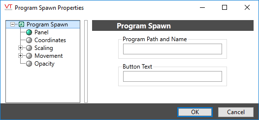 The Program Spawn widget is drawn as a button on any page. In response to being clicked, it will run any configured program that can be found on your computer.