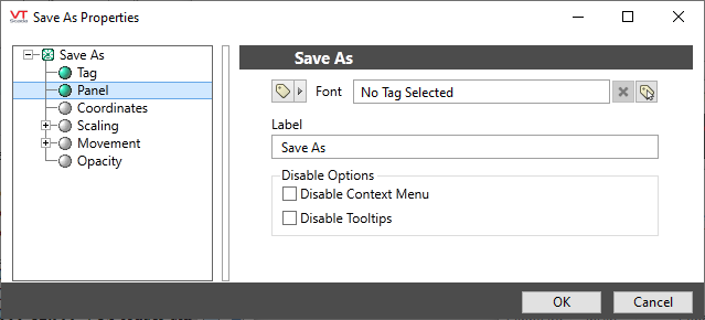 The properties dialog for the Save As widget.