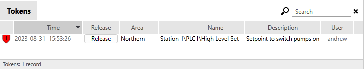 A Tokens List widget is an Alarm List widget, configured to display active Control Tokens.