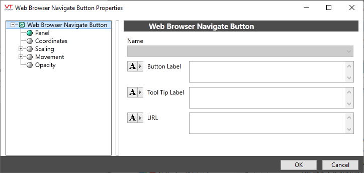 The properties dialog for the Web Browser Navigate button: