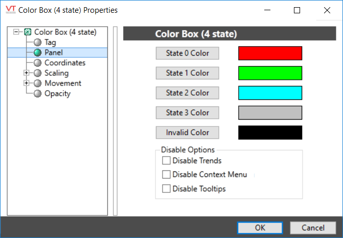Opens the Select Color Dialog from which you can choose a color to display when the tag’s value is in the corresponding state.