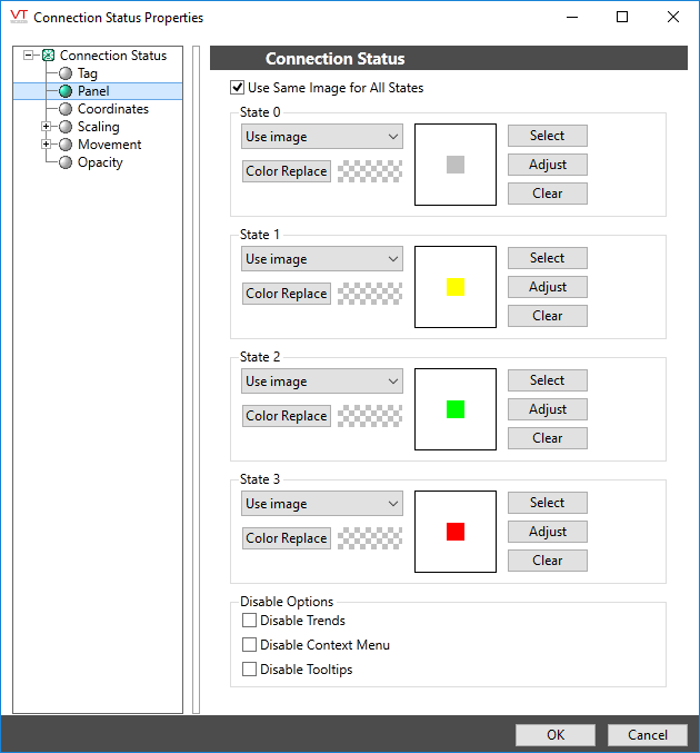 Select this box if you wish to use the image selected for State 0 (Disconnected), for all states of the tag.
