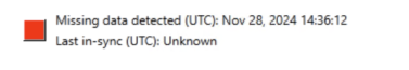 If an error is detected (for example, records are receivedout of order or records are missing) the indicator will change to the error color (default red) and display timestamps indicating when the missing data was detected and the last time data was in sync.