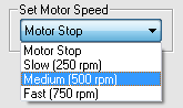 Regardless of the text used for each label, output values are integers beginning with 0 and increasing to the largest configured value, up to 31. The example shown here assumes that the underlying control will set the motor speed to 250 when a value of 1 is sent, 500 when a value of 2 is sent and so on.
