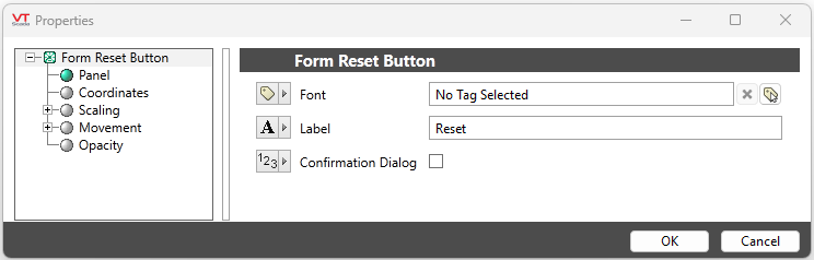 The properties dialog for the Form Reset Button Widget: