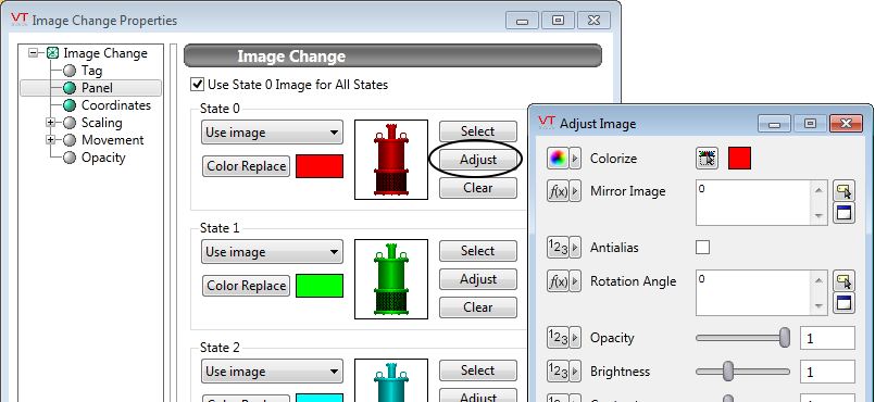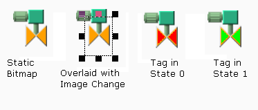 For example, a gray image can be chosen, then colorized so that it appears to be gray in state zero, but green in state one. - Display the same image for each of the tag's states, but with a different color in the image's indicator area for each state