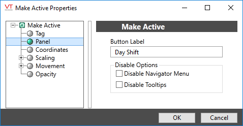 Used in association with the Alarm Notification System, the Make Active tag widget will create a button that can be clicked to select the associated Roster tag as the active roster. This is used to select who will be contacted by the call-out system in the event that an alarm has been triggered and has gone unacknowledged for a defined period of time.