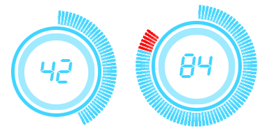 The LCD Ring widget represents the associated tag's value as a highly stylized meter, with a numeric display and a series of tick marks, the number of which fluctuates according to the tag's value. An option in the configuration enables the meter to display alarm values as red tick marks beyond the alarm set point.