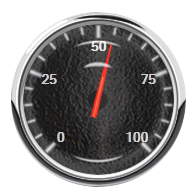 The Cockpit Gauge widget represents the associated tag's value as a photorealistic meter, displaying both labeled major divisions and unlabeled minor divisions, the dial of which fluctuates according to the tag's value.
