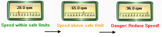 The following example shows a multi-text display below a Linear Gauge widget. As the tag’s value increases, the multi-text displays a different value to either inform or direct the operator, and uses a different text color to catch the operator’s attention.