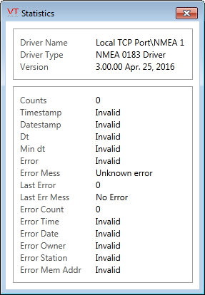 Driver Name The name of the driver (within the driver's code) for which statistics are being displayed.