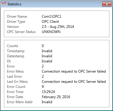 OPC Classic Client Driver Statistics Dialog