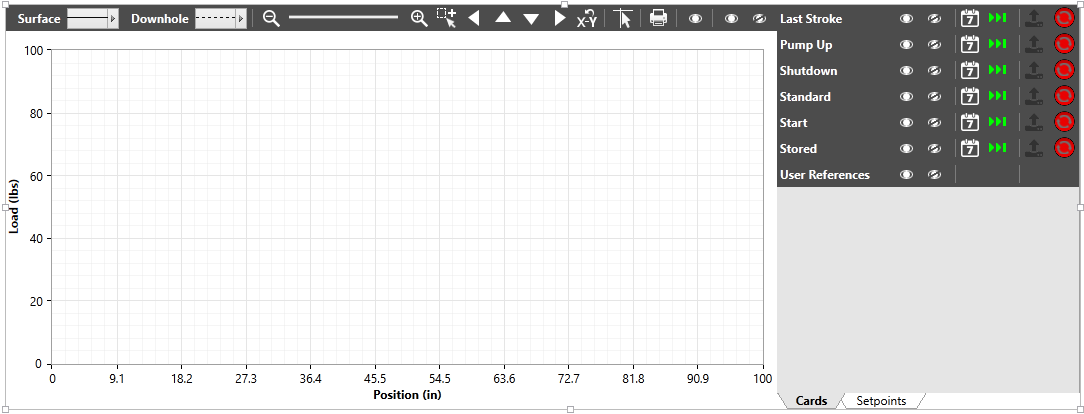 Select to display the force and position setpoints as lines or points on the Dynagraph.