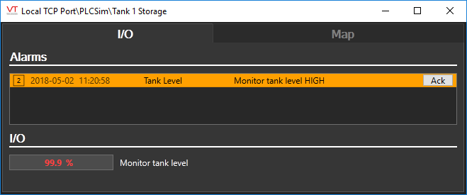 The list may have a filter in effect that hides the alarm. - Select the alarm that you want, then click the acknowledge button - either within the alarm row, or the button in the toolbar.
