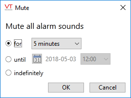 While the mute option is in effect, the alarm indicator at the top of the VTScada screen will have a slash to indicate that audible warnings are disabled.