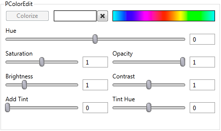\DialogLibrary.PColorEdit(Parms, Hue, Saturation, Brightness, Transparency, Contrast, ColorizeHue, ColorizeInt[, Title, FocusID, Trigger]) |