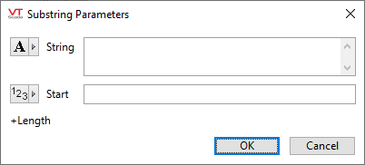 Declare any parameters that will be needed. You may attach metadata to each parameter to control how VTScada will prompt for it. For example, this prompt for Substring parameters asks for text, a number, and an optional numeric.