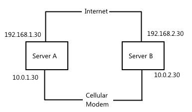 This example specifies that for Server A, IPs on subnet 192.168.2 are to be given priority over IPs to the same workstation on all other subnets. Likewise, for Server B, IPs on subnet 192.168.1 are to be given priority over IPs to the same workstation on all other subnets.