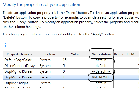 You could rename this to .Startup if the property you are setting loads only on application restart. - Open this file with a text editor and add the appropriate hidden-section label and the properties with values for that workstation.